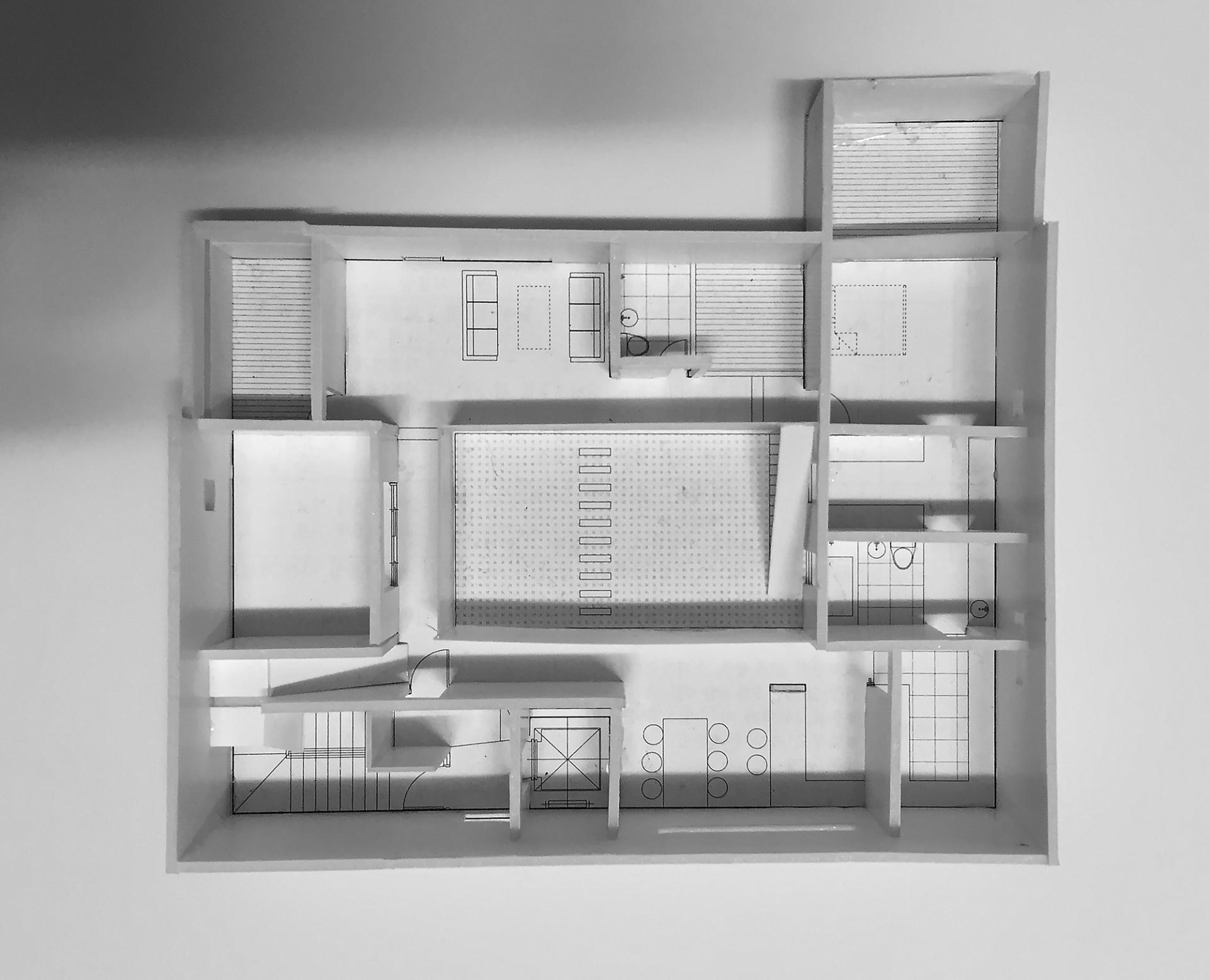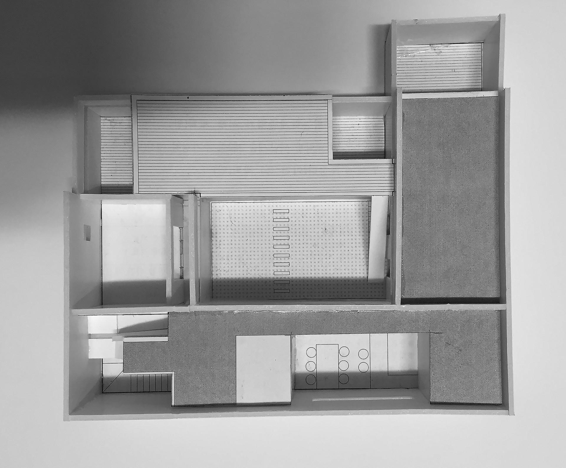 최상층 주택은 가운데 중정을 중심으로 실이 배치되어 외부 소음을 배제하고 하늘과 맞닿는 평온함을 제안하는 디자인