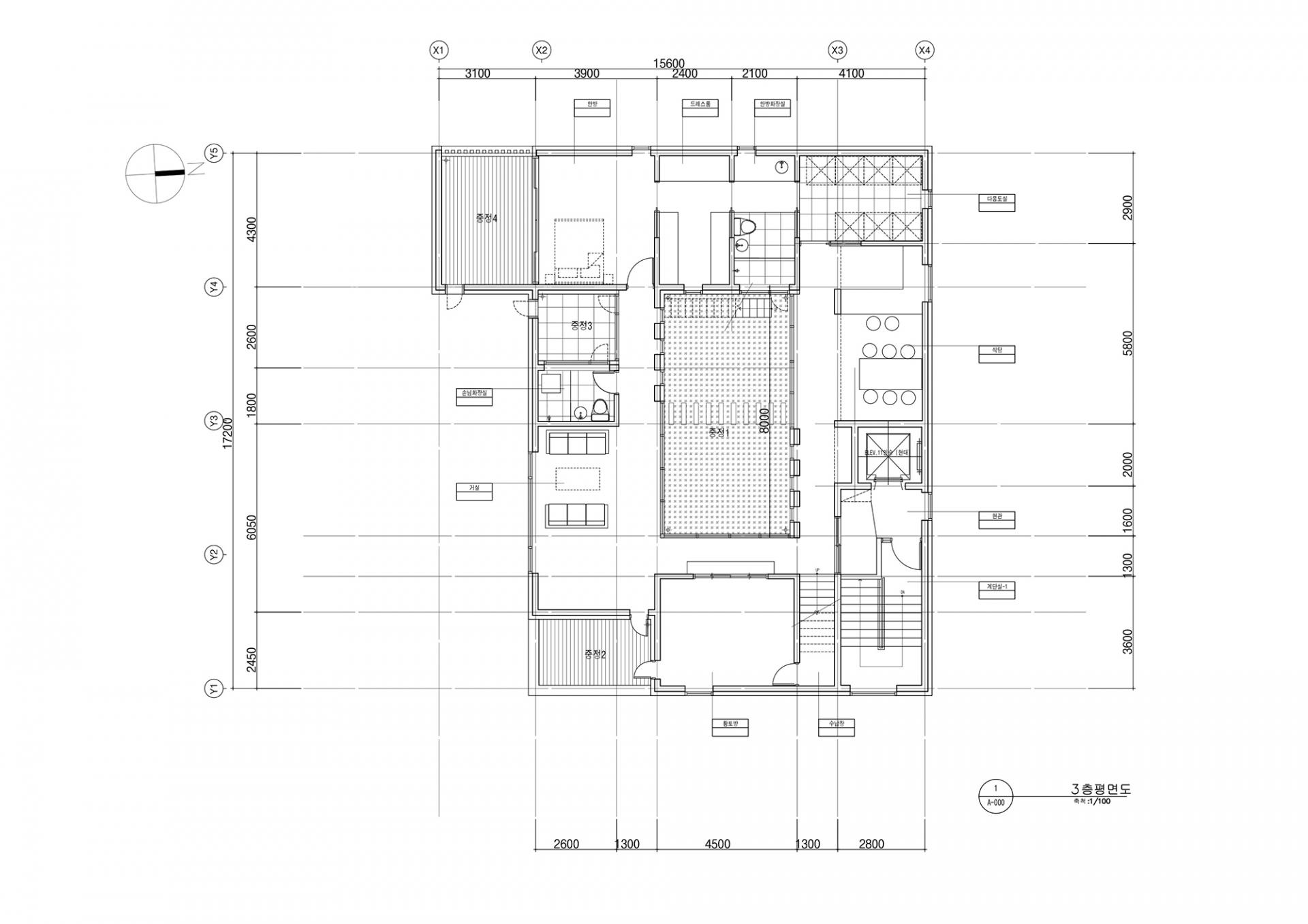 방마다 독립적인 중정 배치, 다른 공간과 간섭을 최소화하여 분리된 다이닝과 주방