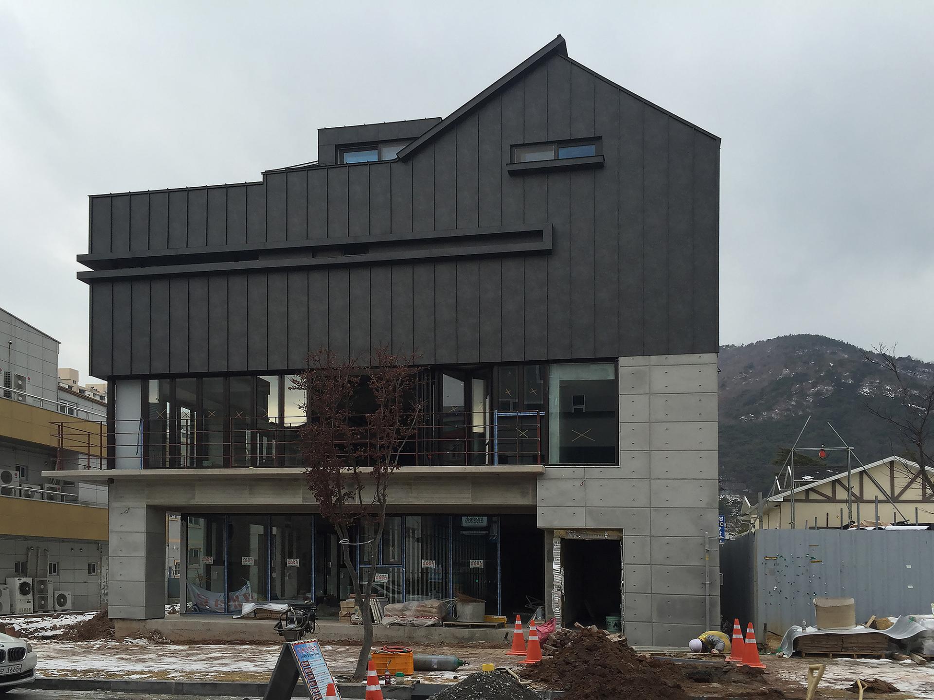 '카페 거리'에 어울리는 임대 기능과 주택이 공존하는 복합 건축물